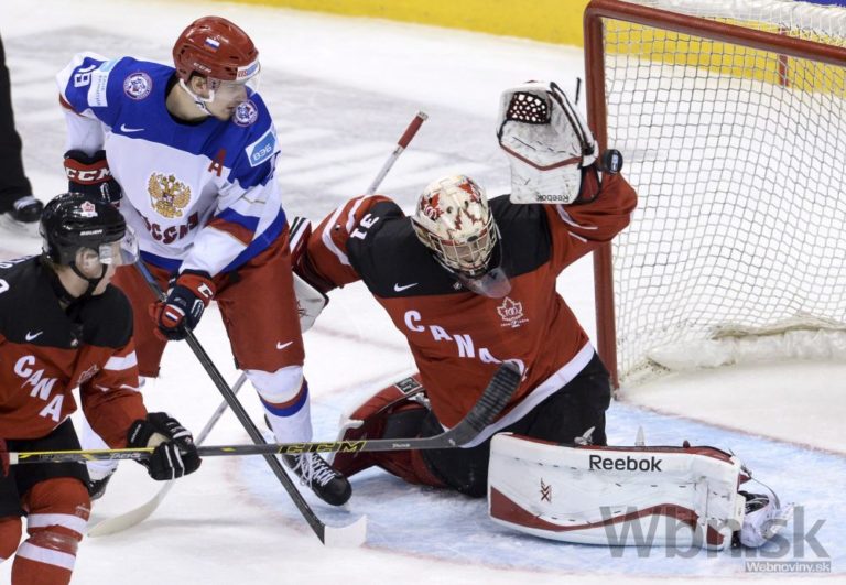 Ruský brankár Igor Šesťorkin neubránil bránkovisko a Kanaďania mu počas tretej tretiny strelili ďalší gól. V zápase o zlato na svetovom hokejovom šampionáte do 20 rokov zdolal Rusov tím Kanady 5:4, Toronto, 5. Jan., 2014. Foto: SITA/AP