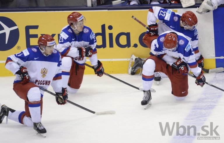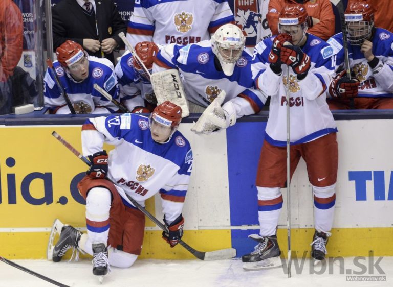 Rusi sú sklamaní z výsledku, v ktorom ich tím Kanady zdolal 5:4 na svetovom hokejovom šampionáte do 20 rokov v Toronte, 5. Jan., 2014. Foto: SITA/AP