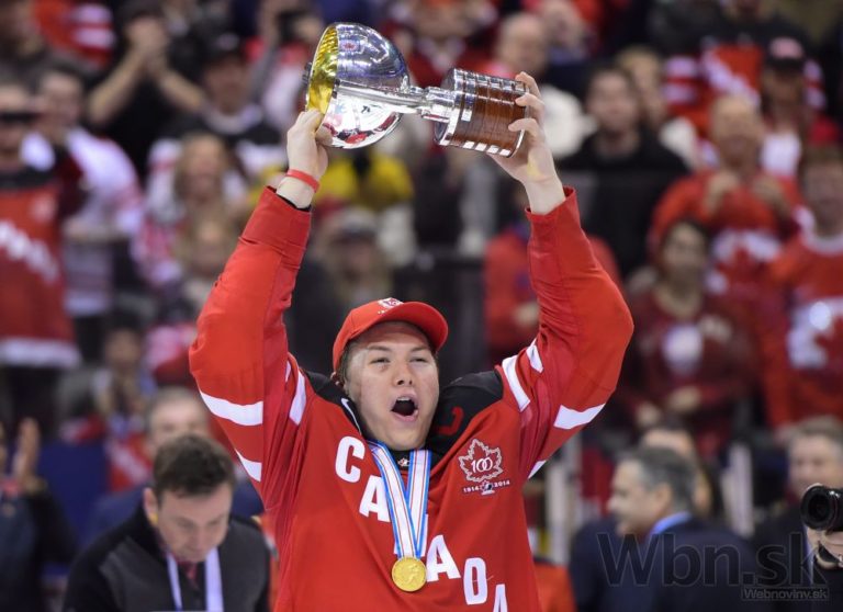 Kanadský hráč Connor McDavid sa teší z pohára pre víťazov svetového hokejového šampionátu do 20 rokov v Toronte, 5. Jan., 2014. Foto: SITA/AP