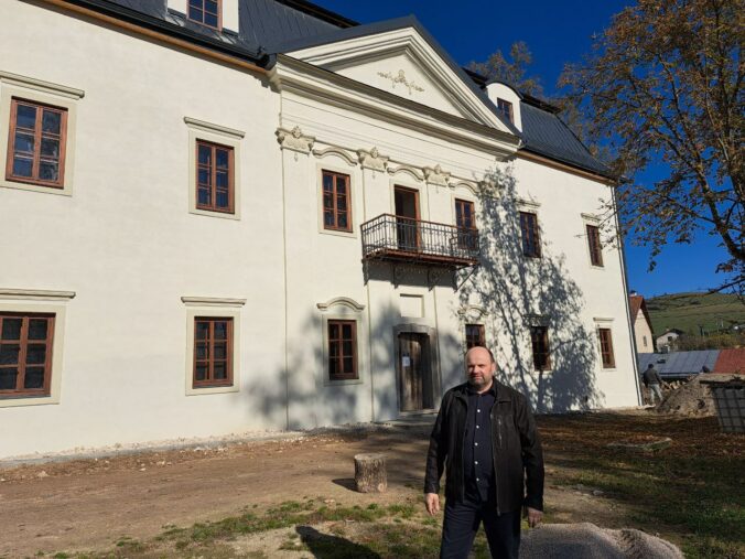 Slavomír Regec z občianskeho združenia Astra pred kaštieľom v Toporci po tohtoročných rekonštrukčných prácach.