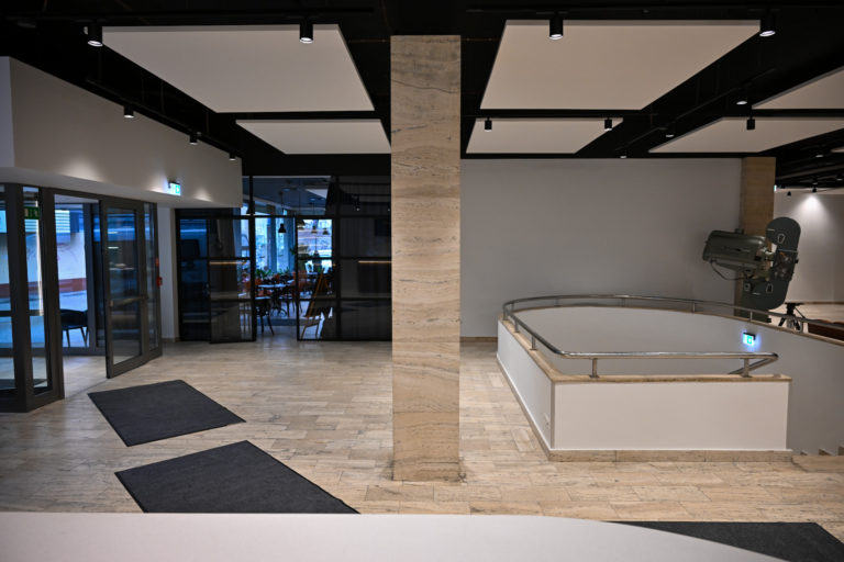 Vstupná hala zrekonštruovaného Kina Lumière na Špitálskej ulici 4 v Bratislave. Bratislava, 18. január 2024. Foto: SITA