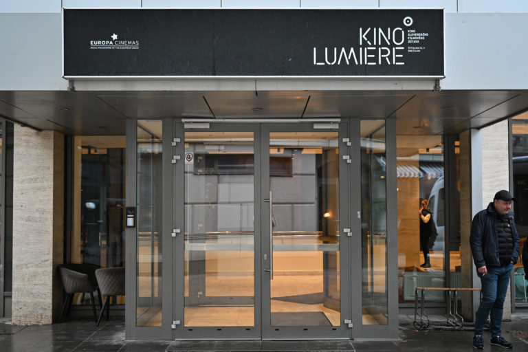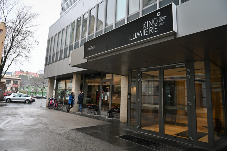 Vstup do budovy kina Slovenského filmového ústavu počas prehliadky zrekonštruovaných priestorov Kina Lumière na Špitálskej ulici 4 v Bratislave. Bratislava, 18. január 2024. Foto: SITA