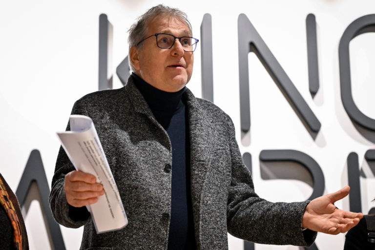 Generálny riaditeľ Slovenského filmového ústavu (SFÚ) Peter Dubecký počas tlačovej konferencie spojenej s prehliadkou priestorov zrekonštruovaných priestorov Kina Lumière na Špitálskej ulici 4 v Bratislave. Bratislava, 18. január 2024. Foto: SITA