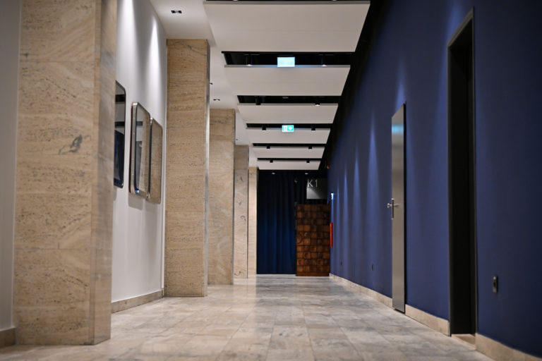 Chodba v priestoroch zrekonštruovaného Kina Lumière na Špitálskej ulici 4 v Bratislave. Bratislava, 18. január 2024. Foto: SITA