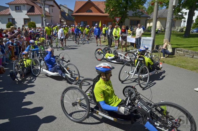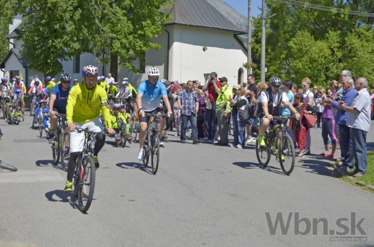 Účastníci cyklopeletónu v rámci charitatívneho podujatia Cez Slovesko na bicykli. Nová Lesná, 5. jún 2015. Foto: SITA/Radoslav Maťaš