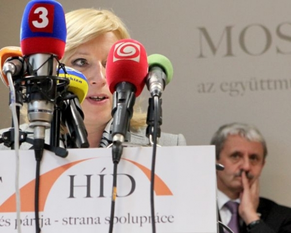 Zľava: Premiérka Iveta Radičová a predseda SDKÚ-DS Mikuláš Dzurinda počas tlačovej besedy po rokovaní Koaličnej rady v centrále Most-Híd. Bratislava, 6. december 2010. Foto: SITA