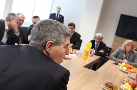 Predseda Most-Híd Béla Bugár (v popredí) počas rokovania Koaličnej rady v centrále Most-Híd. Bratislava, 6. december 2010. Foto: SITA/Nina Bednáriková