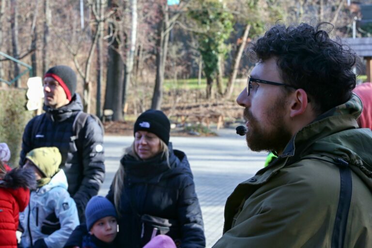 Chovateľ zvierat počas komentovaného kŕmenia zvierat a štedrovečernej prechádzky po ZOO Bratislava. Bratislava, 24. december 2024. Foto: SITA/Tomáš Susko.