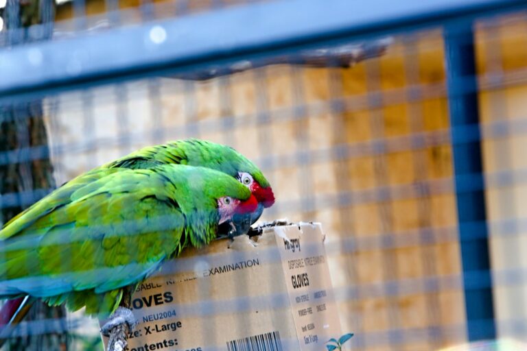 Ara zelená počas komentovaného kŕmenia zvierat a štedrovečernej prechádzky po ZOO Bratislava. Bratislava, 24. december 2024. Foto: SITA/Tomáš Susko.