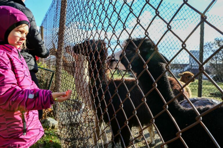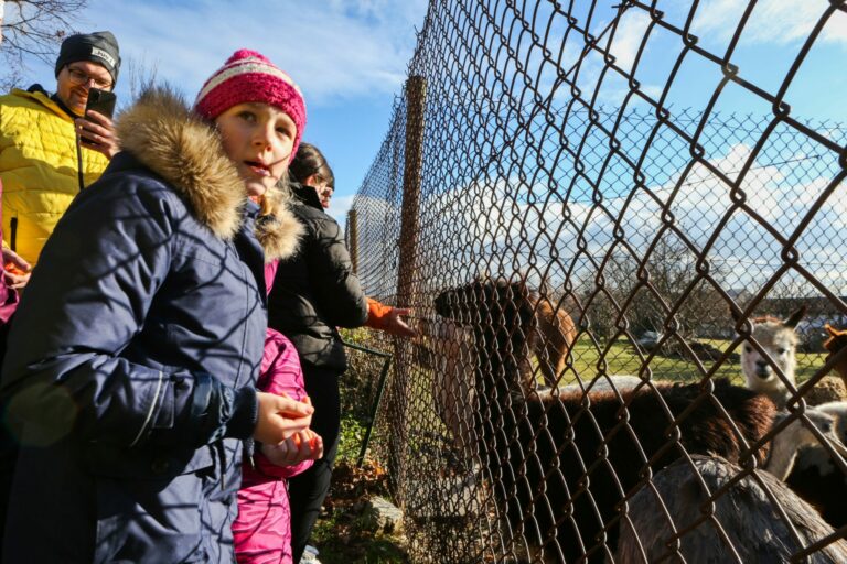 Návštevníci počas kŕmenia lám v rámci komentovaného kŕmenia zvierat a štedrovečernej prechádzky po ZOO Bratislava. Bratislava, 24. december 2024. Foto: SITA/Tomáš Susko.