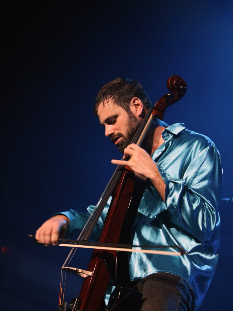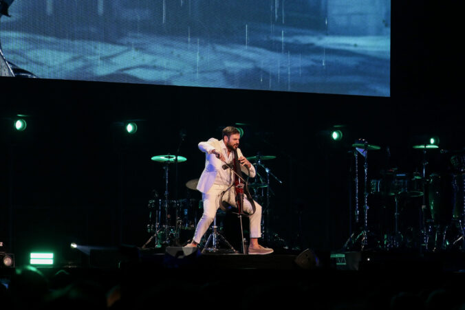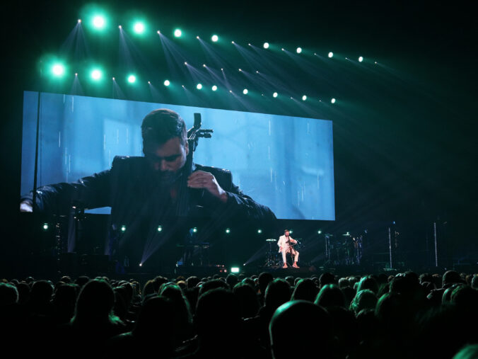 Chorvátsky violončelista Stjepan Hauser počas koncertu v rámci turné The Rebel Is Back! v bratislavskej Tipos Aréne. Bratislava, 14. november 2025. Foto: SITA/Andrea Mezeiová