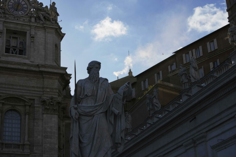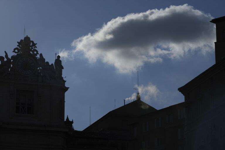 Z komína Sixtínskej kaplnky sa valí biely dym. Foto: SITA/AP