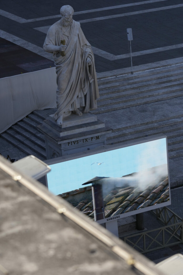 Z komína Sixtínskej kaplnky, kde sa vo Vatikáne vo štvrtok 8. mája 2025 zhromaždilo 133 kardinálov, aby zvolili nástupcu zosnulého pápeža Františka, sa valil biely dym. Foto: SITA/AP