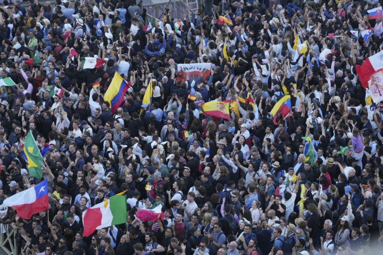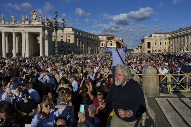 Dav pred Sixtínskou kaplnkou počas konkláve vo Vatikáne, na ktorom sa zvolil nástupca zosnulého pápeža Františka. Foto: SITA/AP