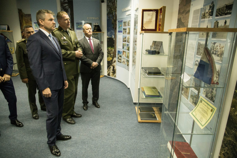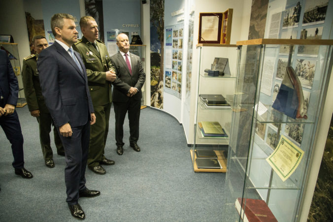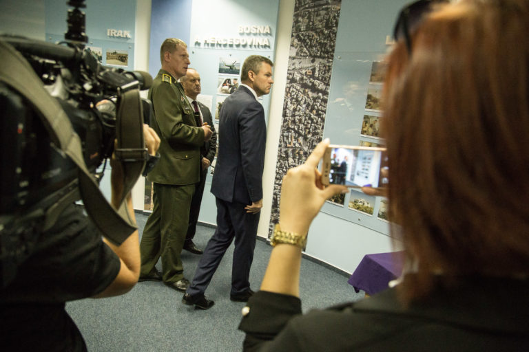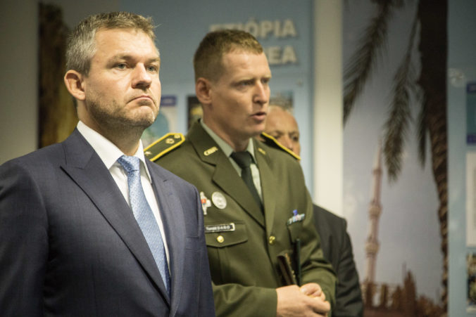 Zľava: Predseda vlády SR Peter Pellegrini a major Tomáš Daňo počas prehliadky Siene slávy v rámci kontrolného dňa premiéra na Ministerstve obrany SR. Bratislava, 14. september 2018. Foto: SITA/Braňo Bibel.