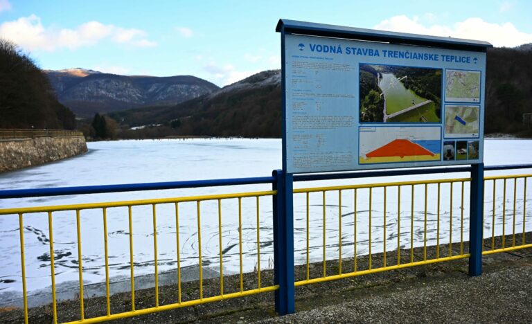 Zamrznutá vodná nádrž Baračka neďaleko Trenčianskych Teplíc. Vďaka výdatným mrazom sa ľad vytvoril na jazerách, rybníkoch a iných prírodných vodných plochách. Trenčianske Teplice, 4. január 2025. Foto: SITA/Tomáš Somr