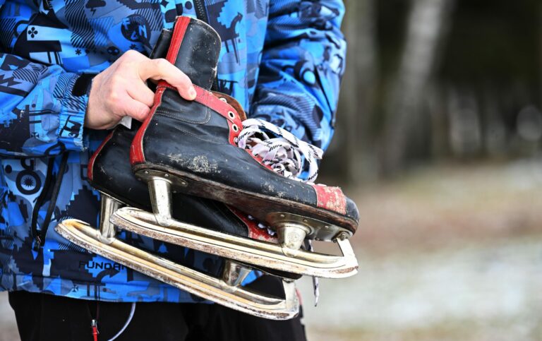Korčuliar ukazuje legendárne korčule tzv. kanady na prírodnom ľade na vodnej nádrži Baračka neďaleko Trenčianskych Teplíc. Vďaka výdatným mrazom sa ľad vytvoril na jazerách, rybníkoch a iných prírodných vodných plochách. Trenčianske Teplice, 4. január 2025. Foto: SITA/Tomáš Somr