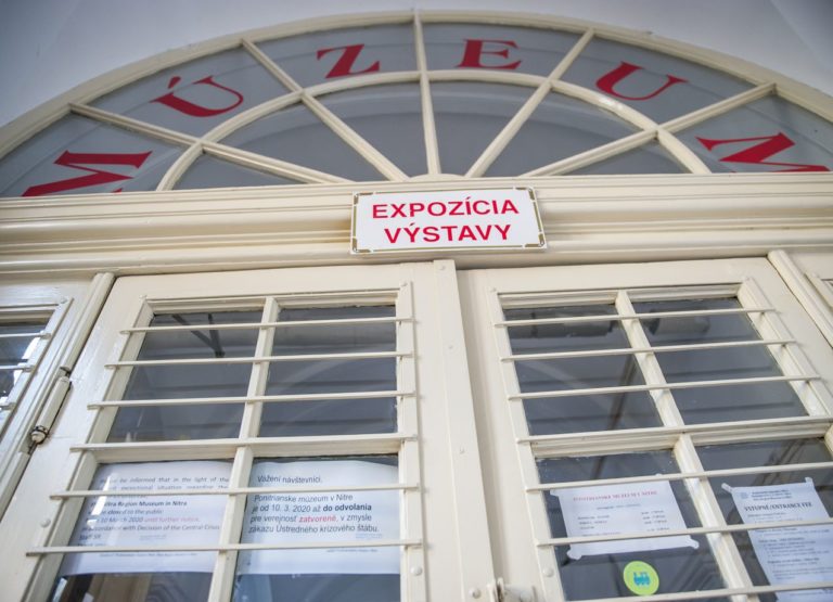 Oznam o dočasnom zatvorení Ponitrianskeho múzea v Nitre v súvislosti s výskytom nového koronavírusu (2019-nCoV) na Slovensku. Nitra, 10. marec 2020. Foto: SITA/Martin Havran