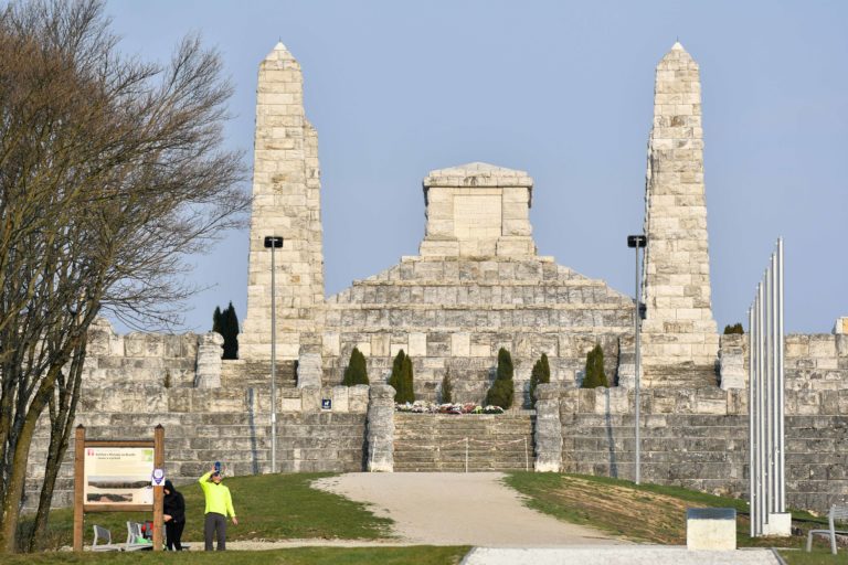 Pohľad na zátarasy pred vstupom na Mohylu Milana Rastislava tefánika v Brezovej pod Bradlom, ktoré mesto opatrilo v dôsledku zvýšeného počtu turistov počas mimoriadnej situácie proti šíreniu ochorenia COVID-19 spôsobeného koronavírusom (2019-nCoV). Brezová pod Bradlom, 29. marec 2020. Foto: SITA/Martin Medňanský