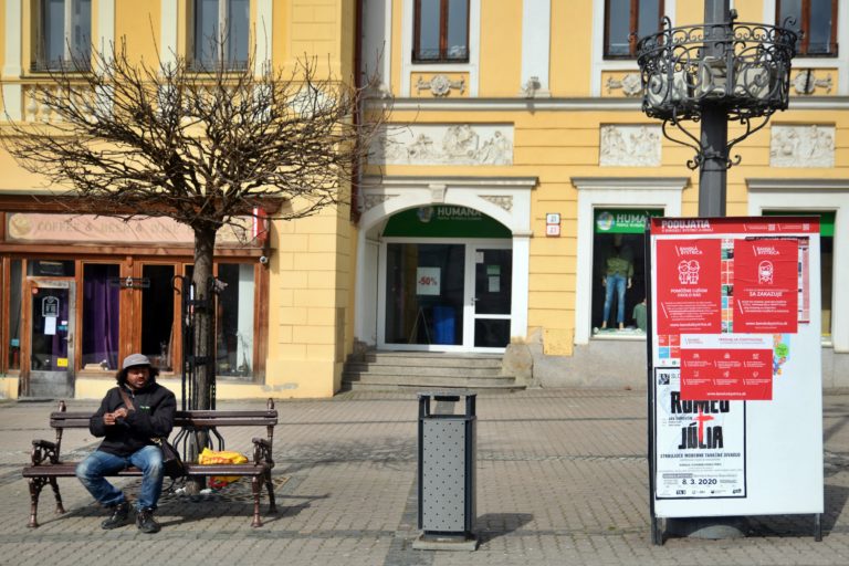 Námestie SNP v Banskej Bystrici počas mimoriadnej situácie v súvislosti s výskytom ochorenia COVID-19 spôsobeným koronavírusom (2019-nCoV) na Slovensku. Banská Bystrica, 23. marec 2020. Foto: SITA/Jakub Julény