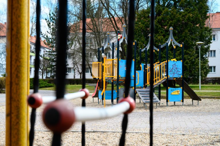 Ihrisko v centre Martina počas mimoriadnej situácie v súvislosti s výskytom ochorenia COVID-19 spôsobeným koronavírusom (2019-nCoV) na Slovensku. Martin, 23. marec 2020. Foto: SITA/Milo Fabian