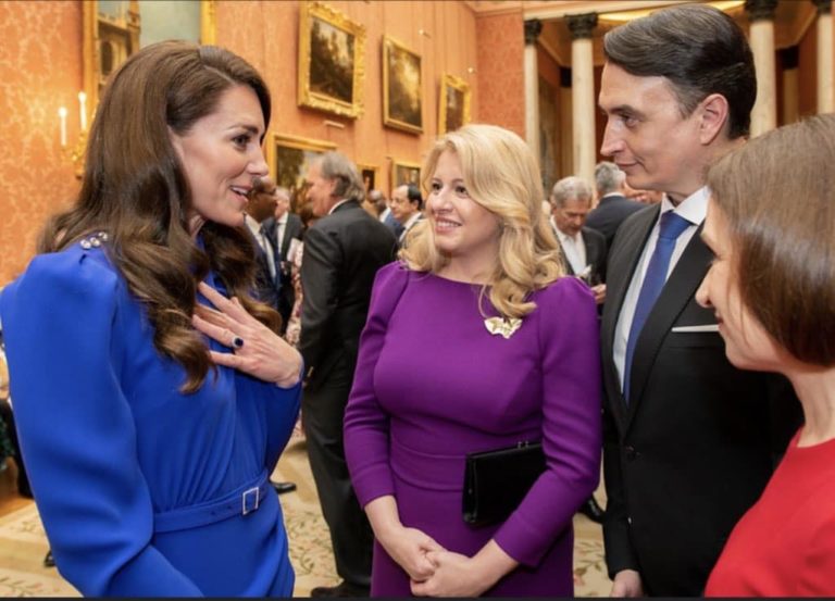 Prezidentka Zuzana Čaputová (uprostred) princezná Kate (vľavo) a Juraj Rizman (vpravo). Foto: Ian Jones, Buckingham Palace/