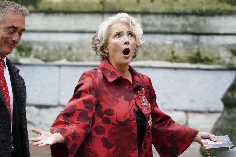 Herečka Emma Thompson a jej manžel Greg Wise dorazili na korunováciu kráľa Karola III. vo Westminsterskom opátstve v Londýne v sobotu 6. mája 2023. Foto: SITA/AP