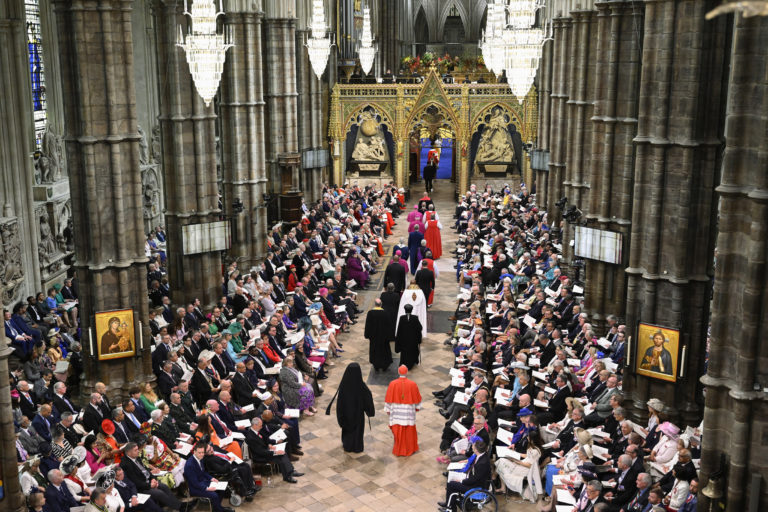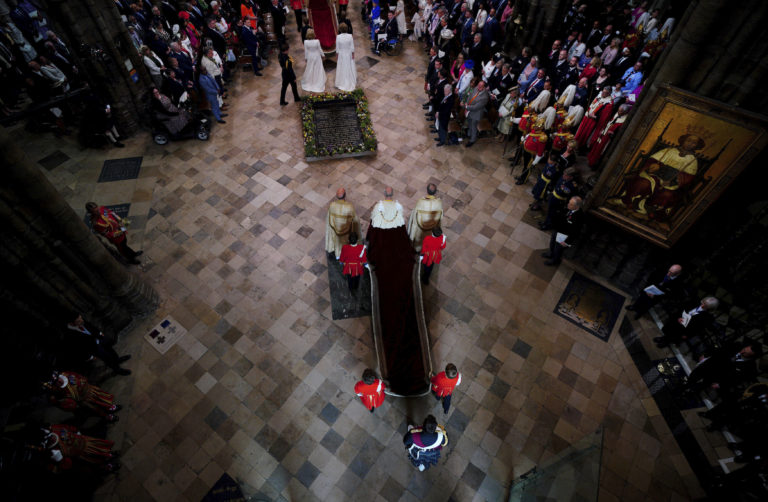 Kráľ Karol III. odchádza z Westminsterského opátstva. Foto: SITA/AP