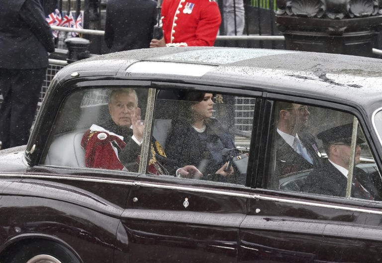 Princ Andrew a princezná Eugenie prichádzajú na korunováciu kráľa Karola III. Foto: SITA/AP