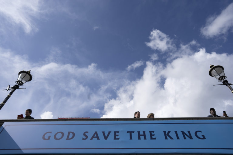 Nápis God Save the King - Boh ochraňuj kráľa. Foto: SITA/AP