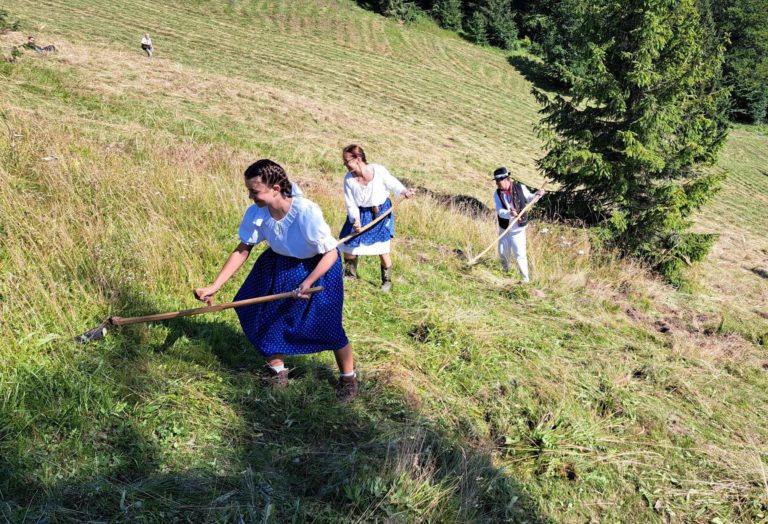 Kopanecké lúky počas piateho ročníka kosenia Kopaneckých lúk v Slovenskom raji. Kopanecké lúky, Slovenský raj, 11. august 2023. Foto: SITA/Mária Frisová.