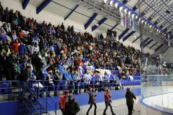 Fanúšikovia hádžu plyšové hračky po ukončení 1. tretiny počas hokejového zápasu 28. kola Tipsport extraligy 2013/2014, HK Poprad – HC Košice. Poprad, 6. december 2013. Foto: SITA/Radoslav Maťaš