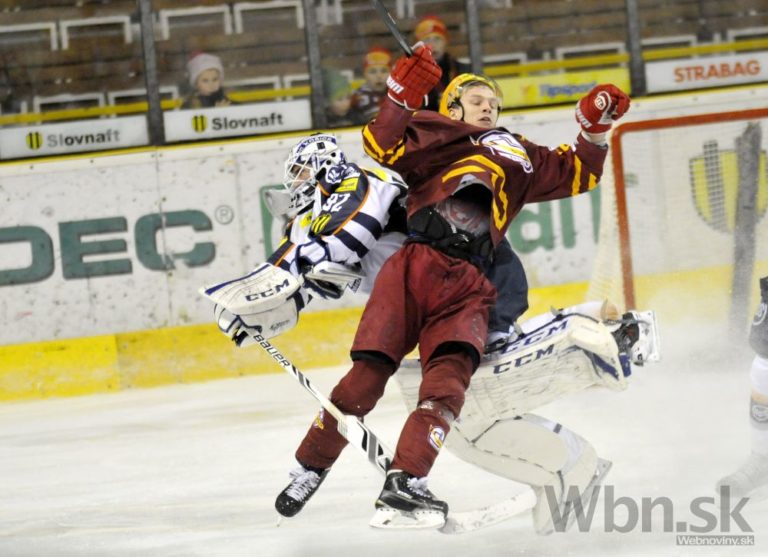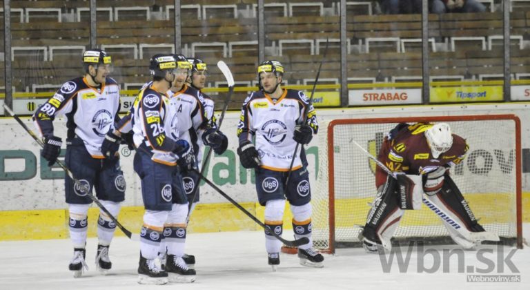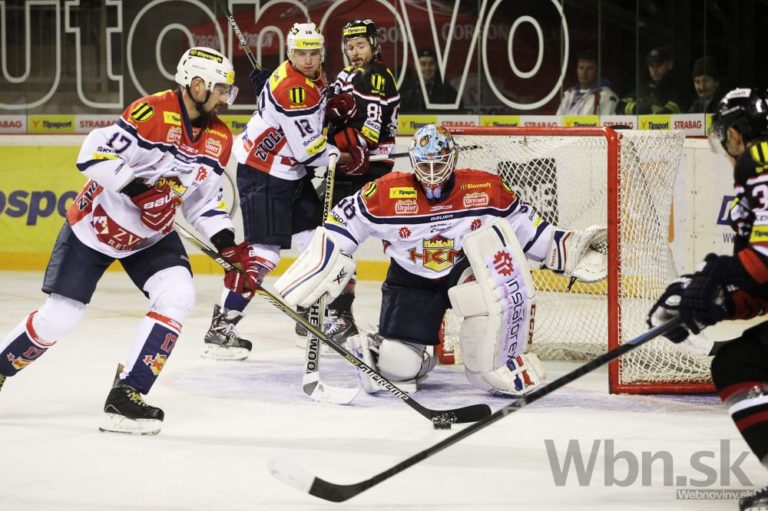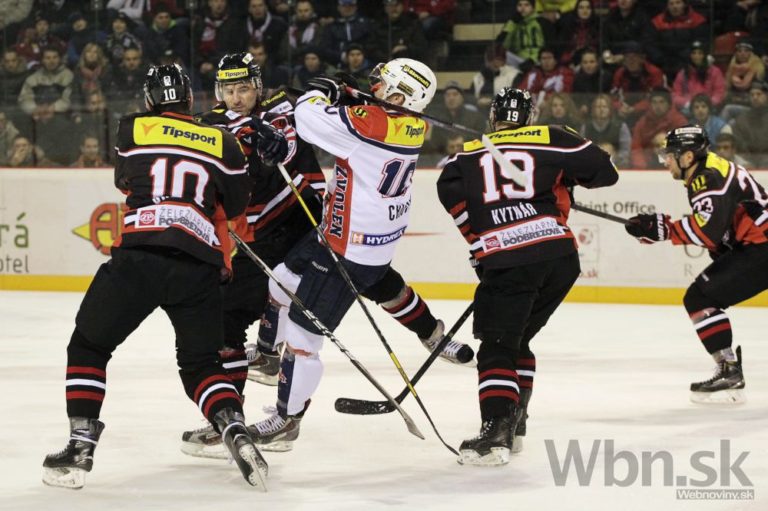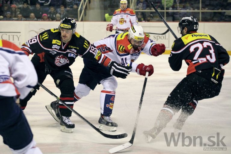 Michal Chovan (uprostred) z HKM Zvolen počas 28. kola Tipsport extraligy medzi HC'05 Banská Bystrica - HKM Zvolen. Banská Bystrica, 28. november 2014. Foto: SITA/Ján Viazanička