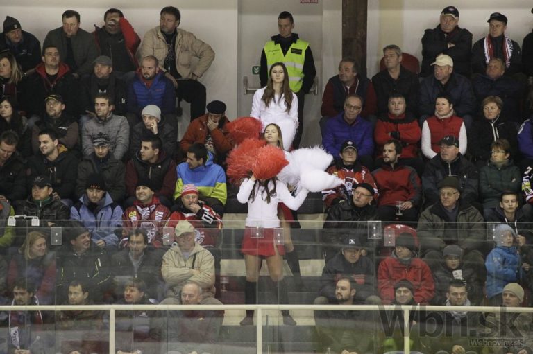 Banskobystrické mažoretky (uprostred) počas 28. kola Tipsport extraligy medzi HC'05 Banská Bystrica - HKM Zvolen. Banská Bystrica, 28. november 2014. Foto: SITA/Ján Viazanička