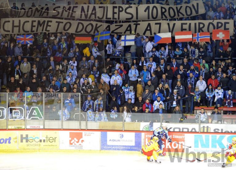 Domáci fanúšikovia klubu HK Nitra počas 52. kola slovenskej hokejovej Tipsport extraligy 2014/2015 medzi HK Nitra - Dukla Trenčín. Nitra, 20. február 2015. Foto: SITA/Martin Havran