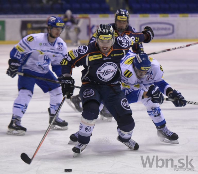 Peter Sojčík (v popredí) z Košíc v zápase 52. kola hokejovej Tipsport extraligy medzi HC Košice - HK Poprad. Košice, 20. február 2015. Foto: SITA/Tibor Zmak