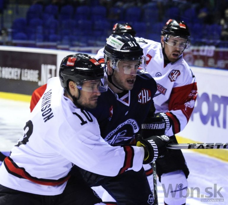 Zľava: Jamie Johnson z Kolína, Marek Bartánus z Košíc a Bjorn Krupp z Kolína v zápase HC Košice (SR) - Kolín Haie (Nem.) 6. kola hokejovej Ligy majstrov 2014/2015. Košice, 8.október 2014. Foto: SITA/Ivan Fleischer