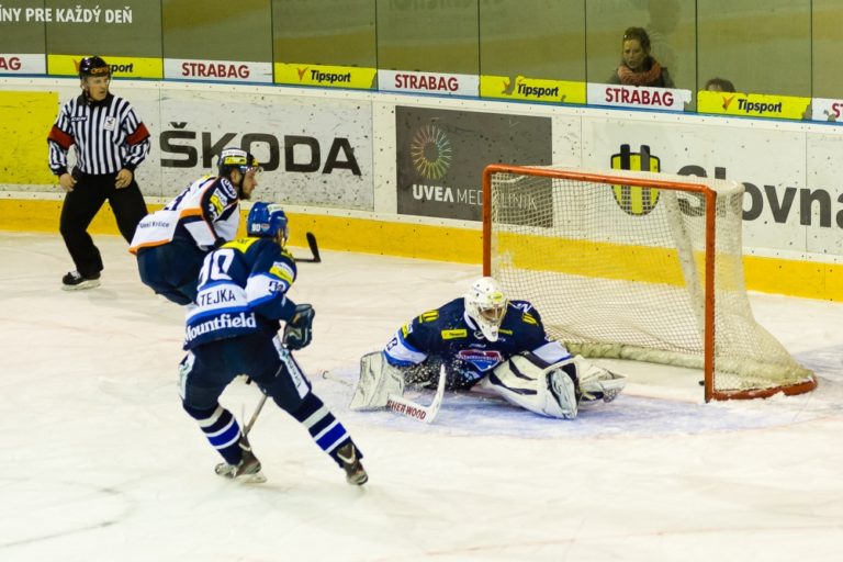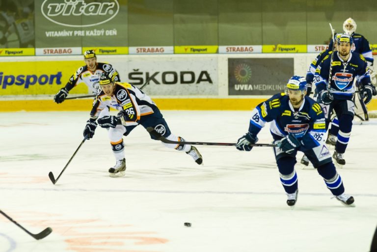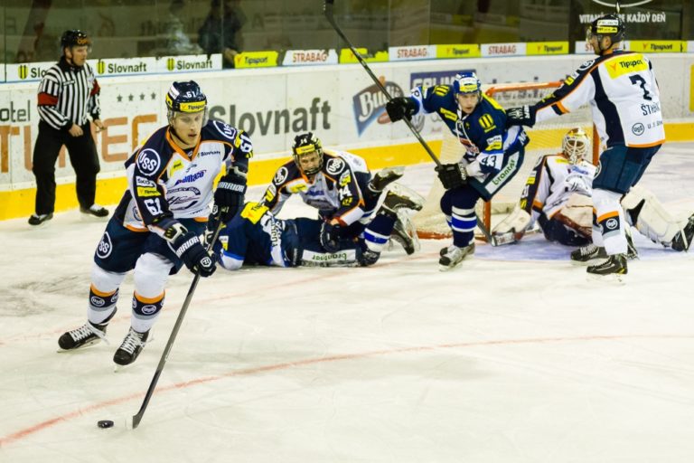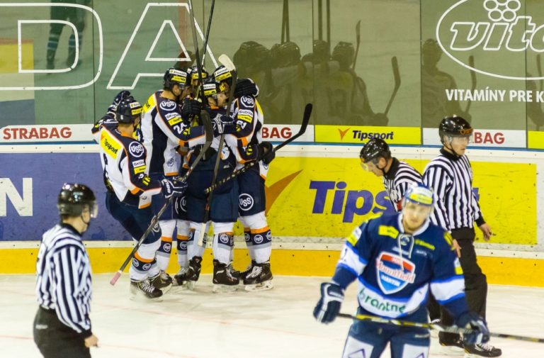 Radosť Košičanov z úvodného gólu počas zápasu medzi MHC Martin a HC Košice. Martin, 12. marec 2014. Foto: SITA/Milo Fabian