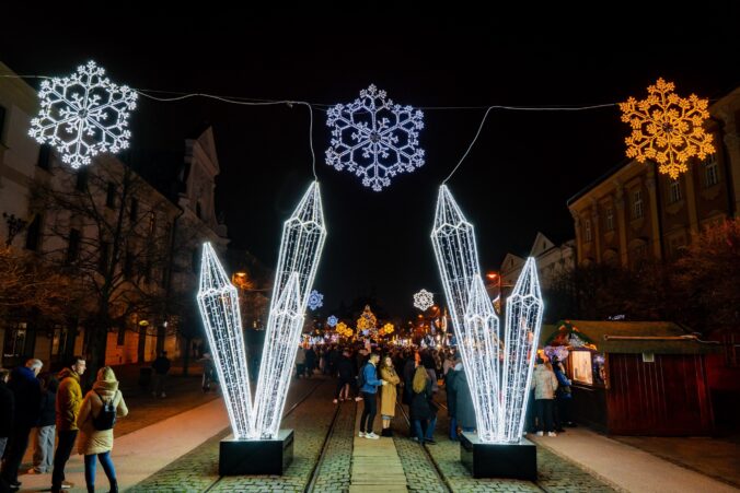 Svetelná výzdoba počas otvorenia 30. ročníka Košických rozprávkových Vianoc 2025 v Košiciach. 1. december 2025. Foto: SITA/Facebook Mesto Košice