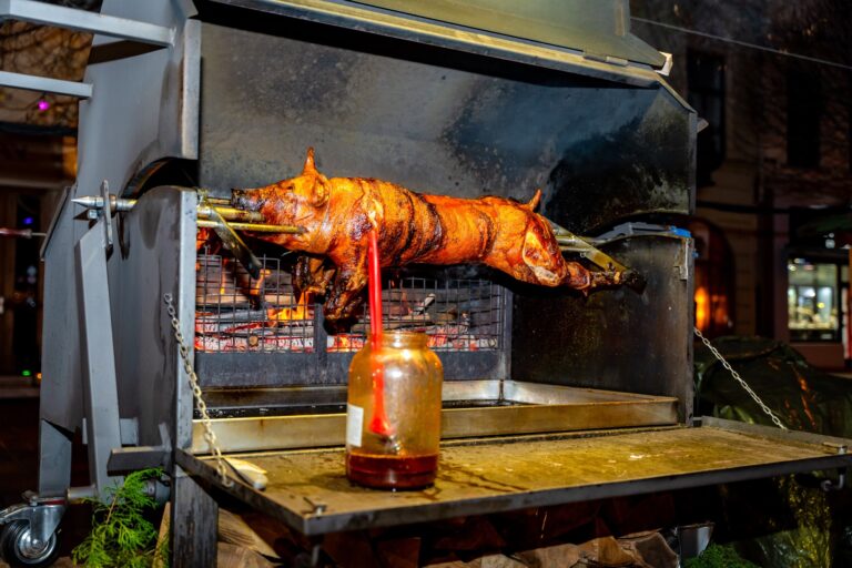 Pečenie prasaťa na ražni na Vianočných trhoch, ktoré sú súčasťou otvorenia 30. ročníka Košických rozprávkových Vianoc 2025. Košice, 1. december 2025. Foto: SITA/Facebook Mesto Košice