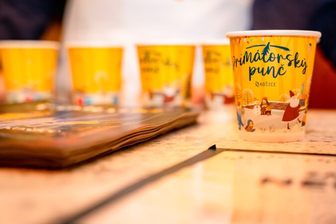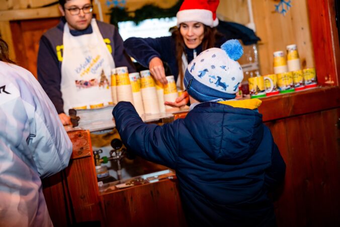 Atmosféra v stánku, kde čapujú Primátorský punč počas otvorenia 30. ročníka Košických rozprávkových Vianoc 2025 v Košiciach. 1. december 2025. Foto: SITA/Facebook Mesto Košice