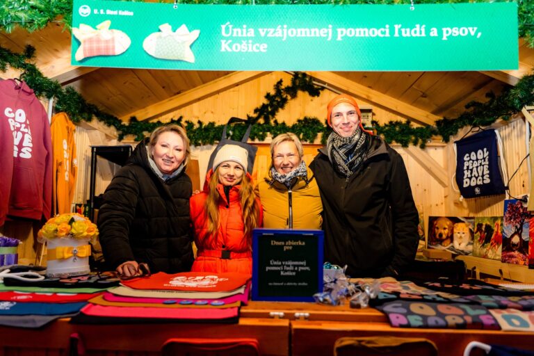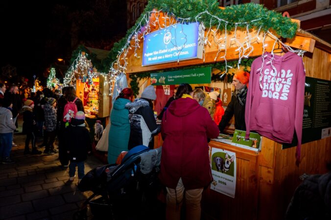 Stánok Únie vzájomnej pomoci ľudí a psov, Košice na Vianočných trhoch v Košiciach, ktoré sú súčasťou otvorenia 30. ročníka Košických rozprávkových Vianoc 2025. Košice, 1. december 2025. Foto: SITA/Facebook Mesto Košice