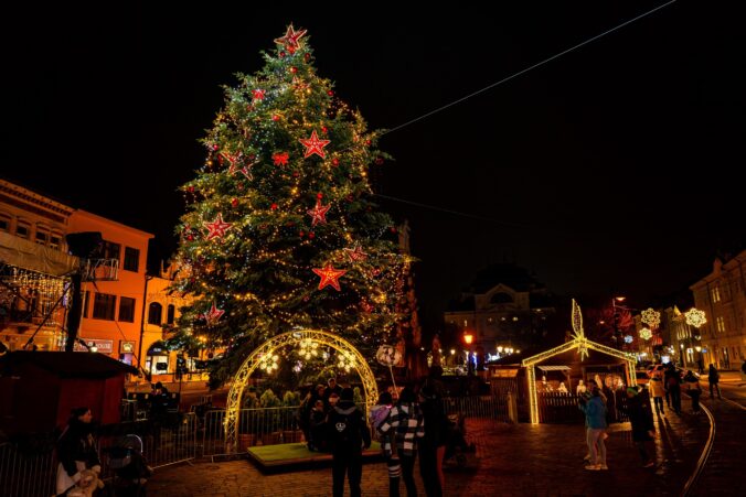 Rozsvietený Vianočný stromček a Betlehem vítajú návštevníkov počas otvorenia 30. ročníka Košických rozprávkových Vianoc 2025 v Košiciach. 1. december 2025. Foto: SITA/Facebook Mesto Košice
