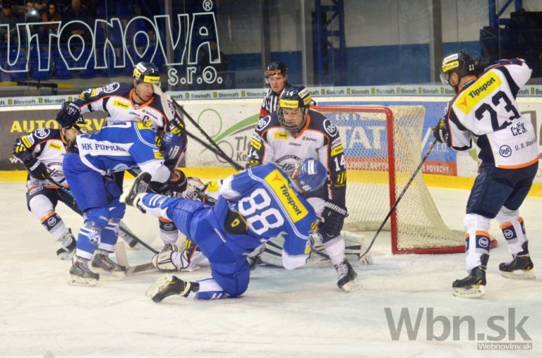 Súboj pred bránou mužstva HC Košice počas zápasu 16. kola Tipsport extraligy medzi HK Poprad - HC Košice. Poprad, 24. október 2014. Foto: SITA/Radoslav Maťaš