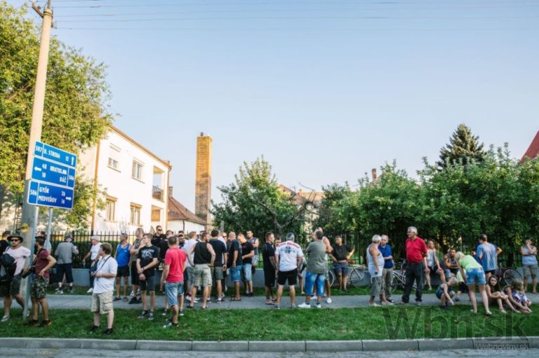 Účastníci protestu proti ignorovaniu referenda o umiestnení imigrantov v Gabčíkove. Gabčíkovo, 1. september 2015. Foto: SITA/Marko Erd