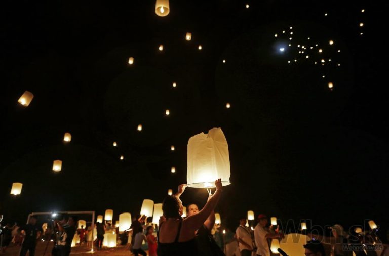 Thajčania vypúšťajú lampióny na znak úcty k obetiam ničivého cunami v krajiných Indického oceánu. Thajsko, Ban Nam Kem, 26. decembra 2014. Foto: SITA/AP