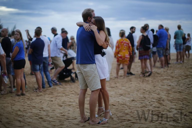 Objímajúci sa pár počas spomienkovej ceremónie v rámci 10. výročia od ničivého cunami v Indonézskych krajinách. Thajsko, Kao Lak, 26. decembra 2014. Foto: SITA/AP