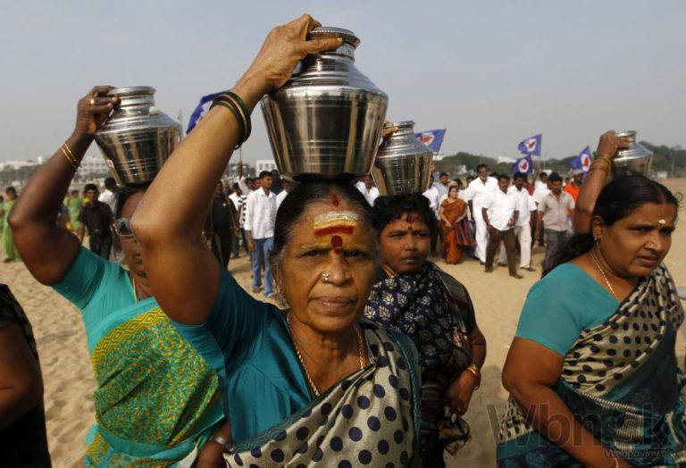 Indické ženy počas spomienkového ceremoniálu na Marina Beach v rámci 10. výročia od ničivého cunami. India, 26. decembra 2014. Foto: SITA/AP
