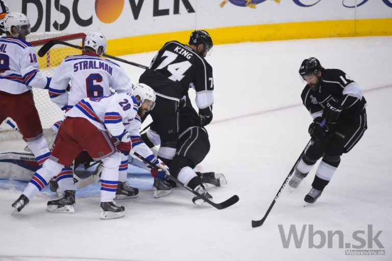 Radosť útočníka Los Angeles Kings Justina Williamsa (vľavo) po góle, ktorý strelil do siete New Yorku Rangers počas piateho finálového zápasu NHL. Foto: SITA/AP