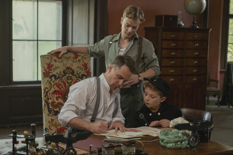 Záber z filmu Králiček Jojo. Sam Rockwell, Alfie Allen, Roman Griffin Davis. Foto: CInemArt SK (klient)